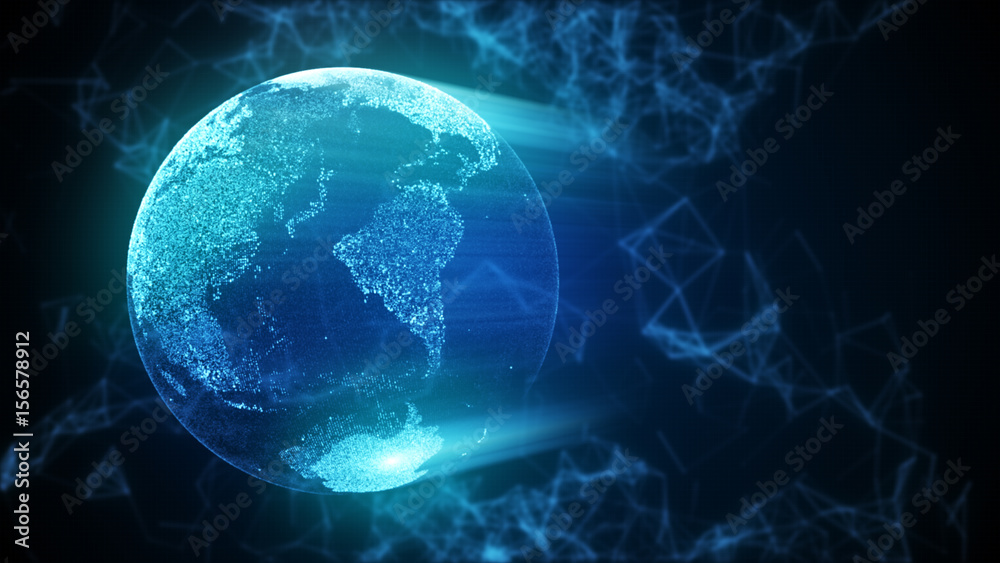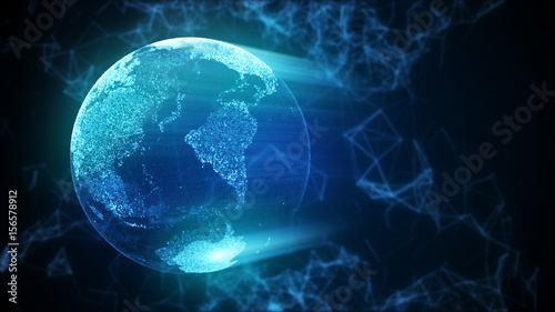 The watermark will not be included on Sticker.: 3d illustration abstract globe with particles and plexus structure - copy space