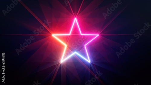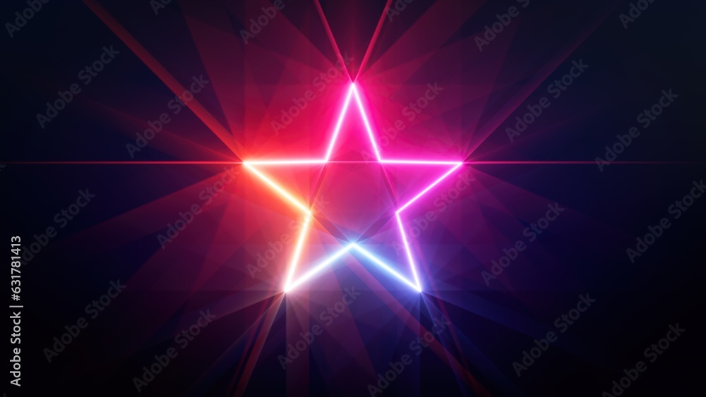 The watermark will not be included on Sticker.: 3d render, abstract background with neon star glowing in the dark - simple linear symbol - minimalist