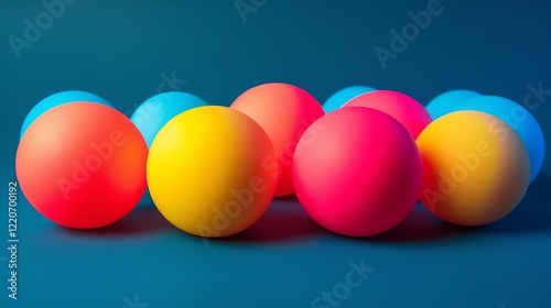 The watermark will not be included on Sticker.: 3d rendering of a group of different colored spheres on a blue background - the spheres are arranged