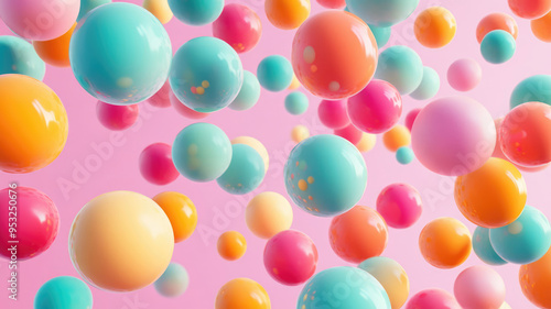 The watermark will not be included on Sticker.: 3d rendering of colorful balls floating in a pastel-colored background - ai, detailed and realistic i