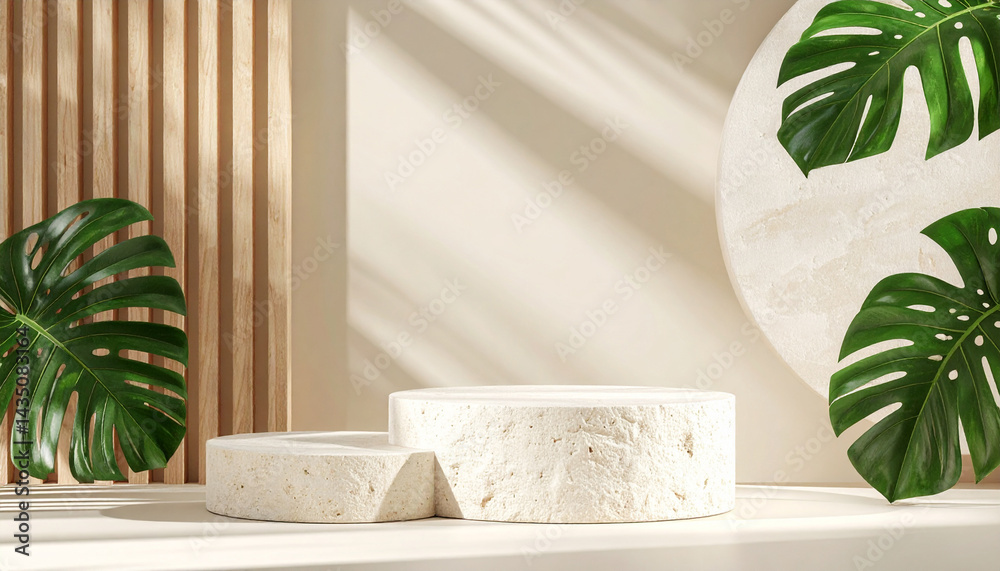 3d round podium set background with light and shadow - abstract geometric composition in minimalist dSticker
