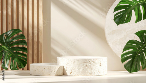 The watermark will not be included on Sticker.: 3d round podium set background with light and shadow - abstract geometric composition in minimalist d