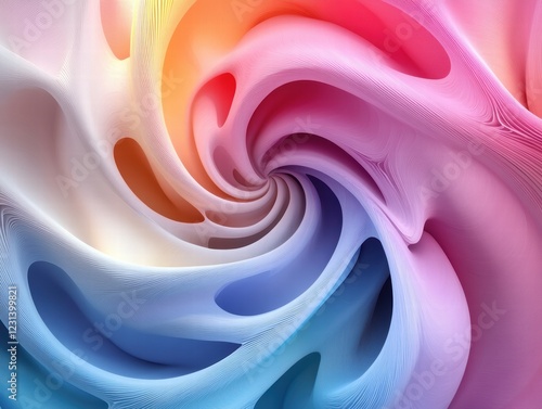The watermark will not be included on Sticker.: A 3d animated abstract composition of spiraling shapes and luminous colors, evoking a sense of movem
