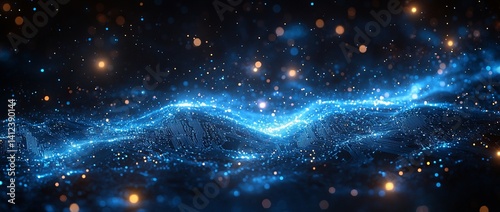 The watermark will not be included on Sticker.: A blue and white image of a network of lines and dots, blue technology background with circuit board