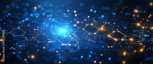 Sticker : A blue and white image of a network of lines and dots, blue technology background with circuit board