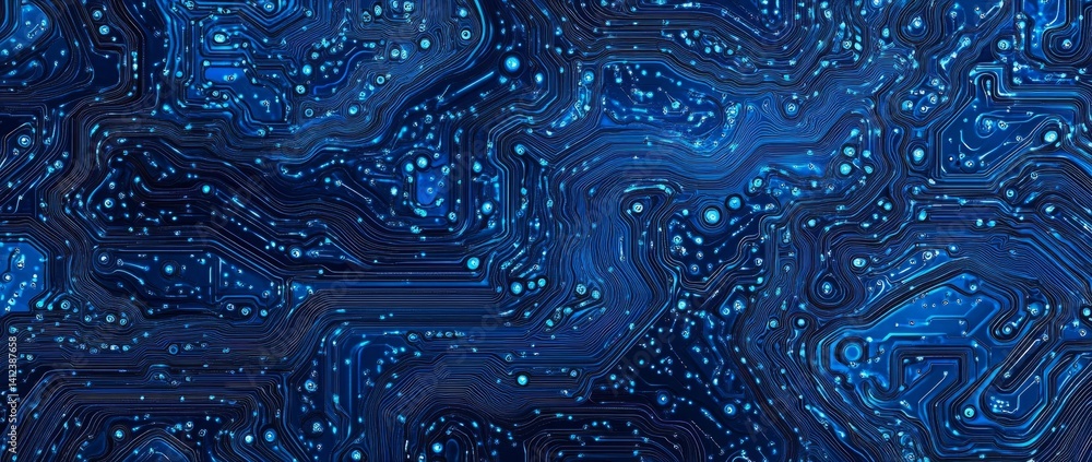Sticker a blue and white image of a network of lines and dots, blue technology background with circuit board - Stickers Sticker a blue and white image of a network of lines and dots, blue technology background with circuit board - Stickers