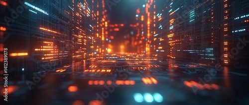 The watermark will not be included on Sticker.: A blue and white image of a network of lines and dots, blue technology background with circuit board