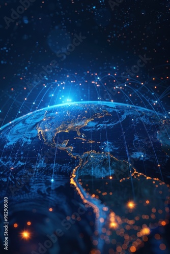 Sticker a blue planet with a network of lines surrounding it. the planet is surrounded by a starry sky - Stickers Sticker a blue planet with a network of lines surrounding it. the planet is surrounded by a starry sky - Stickers