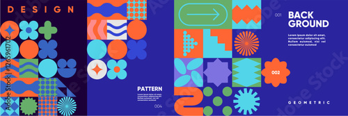 The watermark will not be included on Sticker.: A bold abstract pattern with geometric shapes and vivid colors in a minimalist style - a modern vecto