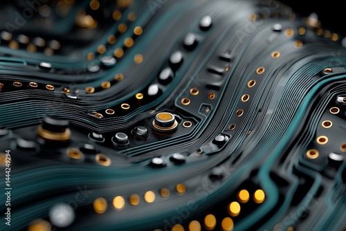 Sticker a close up of a circuit board with many small gold and silver dots. digital background concept. - Stickers Sticker a close up of a circuit board with many small gold and silver dots. digital background concept. - Stickers