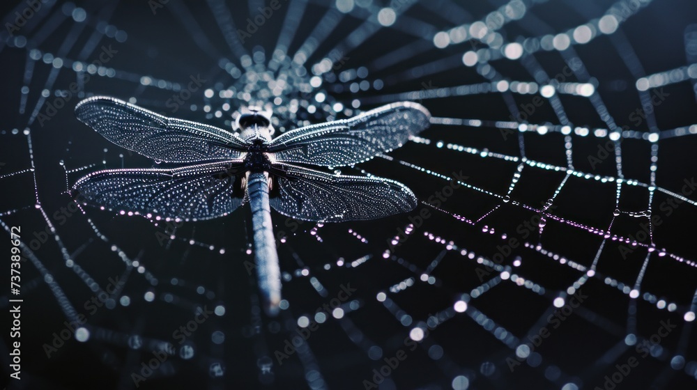 Sticker a close up of a spider web with a dragonfly on it's back and it's wings spread out. - Stickers Sticker a close up of a spider web with a dragonfly on it's back and it's wings spread out. - Stickers