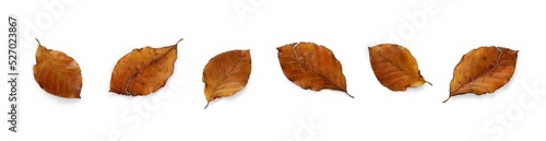 The watermark will not be included on Sticker.: A collection of dried, dry autumn beech tree leaves isolated on a flat background - high resolution -