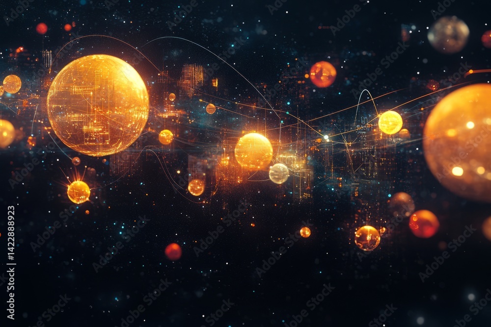 Sticker a computer generated image of a galaxy with many planets and stars. symbolizing the intersection of
