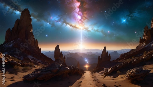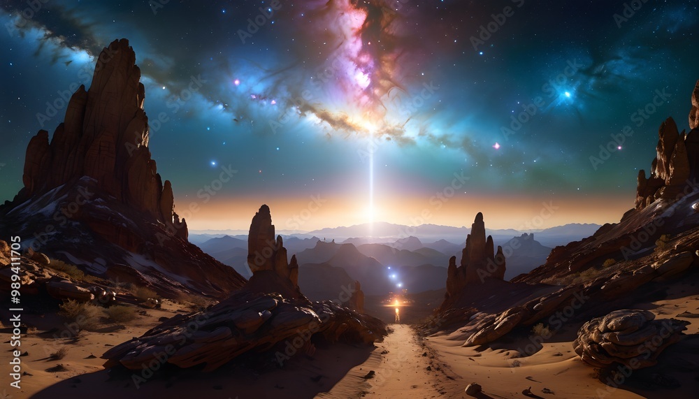 Sticker : A desert landscape with a path in the middle of it -