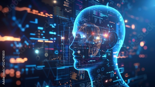 The watermark will not be included on Sticker.: A digital rendering of a human head composed of lines and dots -