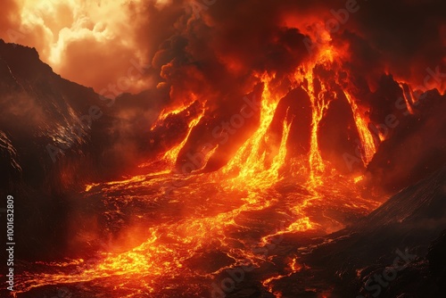 A fiery scene with a large red sun and a large red moon, generative ai imageSticker