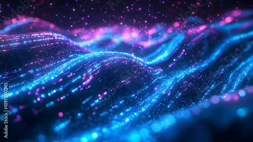 A flowing stream of glowing blue and pink particles representing futuristic data or neural activity Sticker