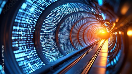 Sticker : A futuristic tunnel illuminated with vibrant lights, showcasing a blend of technology and motion in