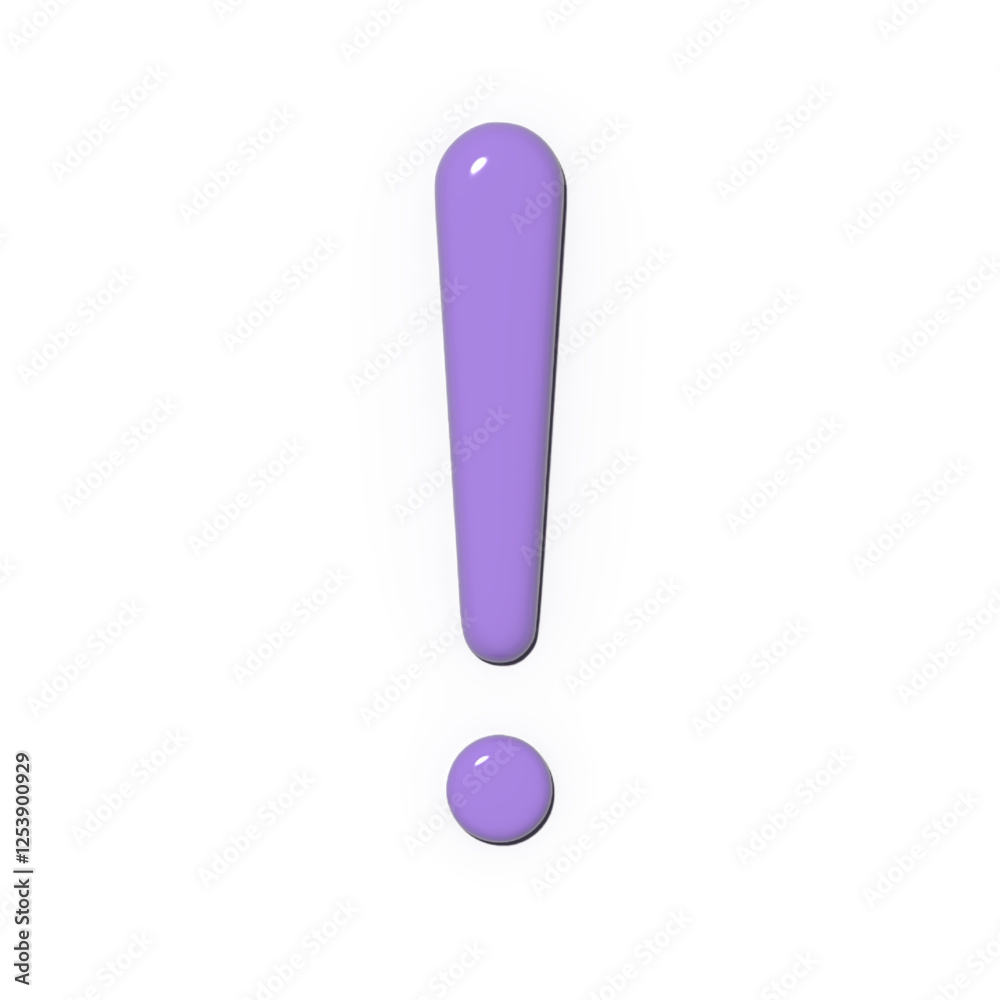 A glossy 3d lavender exclamation point stands out against a pristine white backdrop creating a moderSticker