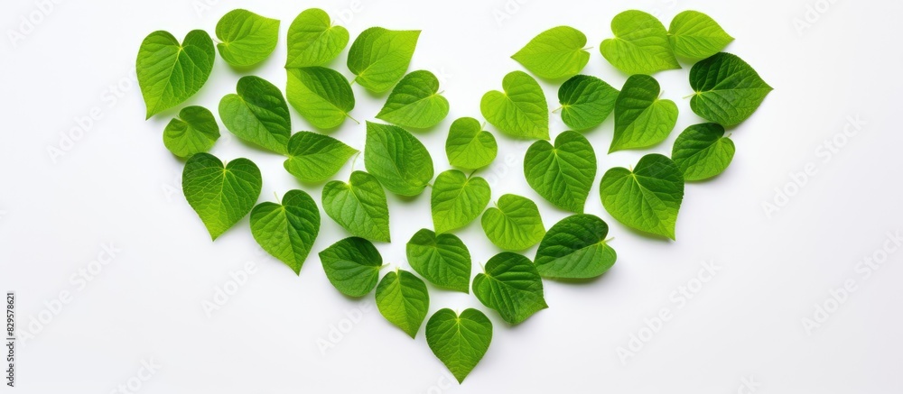 Sticker a green heart shaped leaf set against a white backdrop with a clipping path for easy editing suitabl