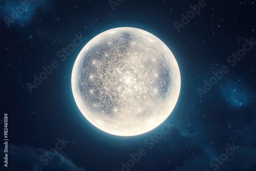 A large full moon with intricate sacred geometry patterns within its glowSticker