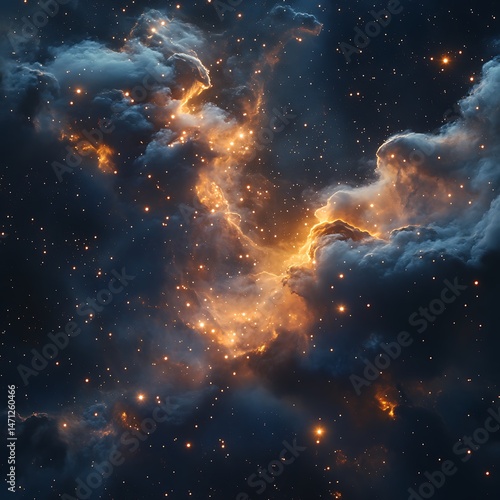 The watermark will not be included on Sticker.: A majestic star-forming region with dynamic light patterns and glowing cloud textures -