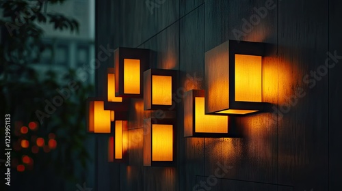 Sticker : A modern geometric wall lamp creating artistic light patterns in darkness -