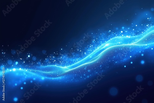 Sticker a mystical blue wave of light with sparkling particles flowing through a dark background, creating a