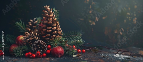 The watermark will not be included on Sticker.: A pine tree with fruits a pine cone on a copy space image