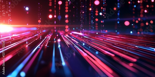 The watermark will not be included on Sticker.: A pulsating, digital line, a symphony of binary code and data flow, stretches across a futuristic ca