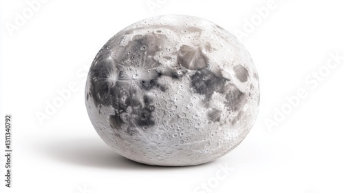 Sticker : A realistic view of the moon with detailed surface features and craters on an isolated white backgro