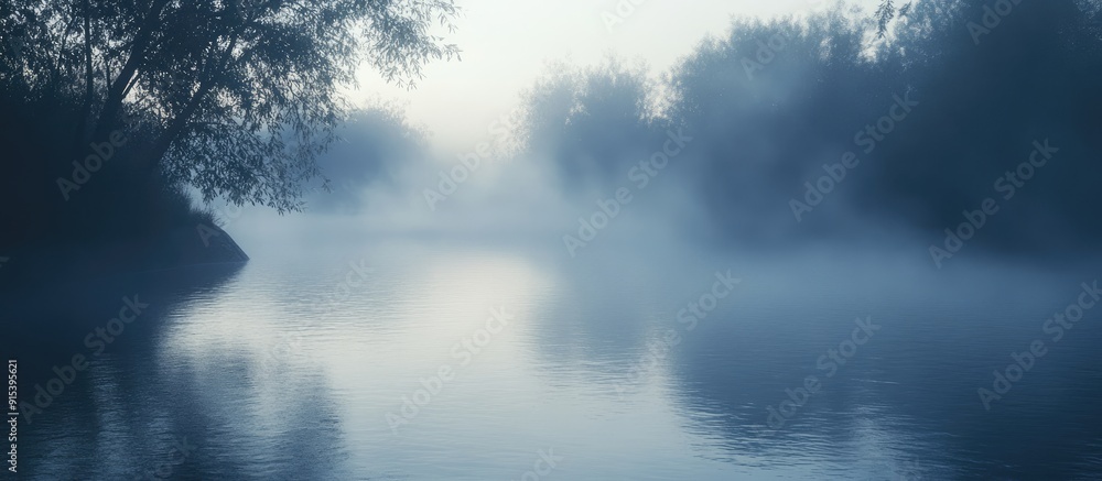 Sticker a river in the early morning mist. with copy space image. place for adding text or design - Stickers Sticker a river in the early morning mist. with copy space image. place for adding text or design - Stickers