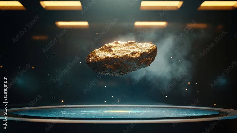 The watermark will not be included on Sticker.: A rocky asteroid floating in a spacelike environment on display