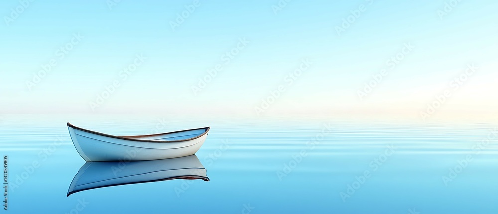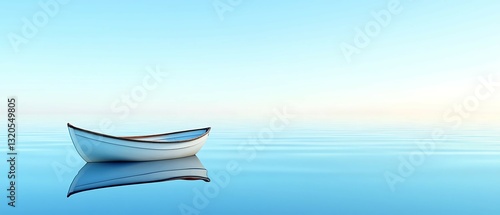 Sticker a serene scene featuring a small white boat floating on calm blue waters under a clear sky. - Stickers Sticker a serene scene featuring a small white boat floating on calm blue waters under a clear sky. - Stickers