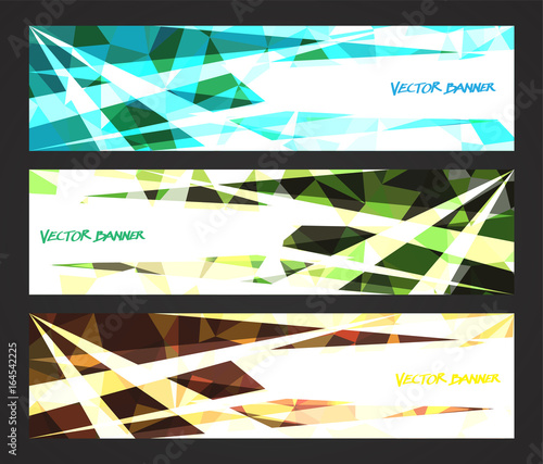The watermark will not be included on Sticker.: A set design of abstract modern vector bright horizontal web banner colourful with shiny polygonal b