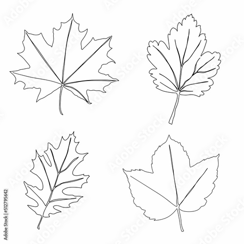 The watermark will not be included on Sticker.: A set of autumn leaves drawn with a continuous line - autumn leaf in one line style icon vector illus