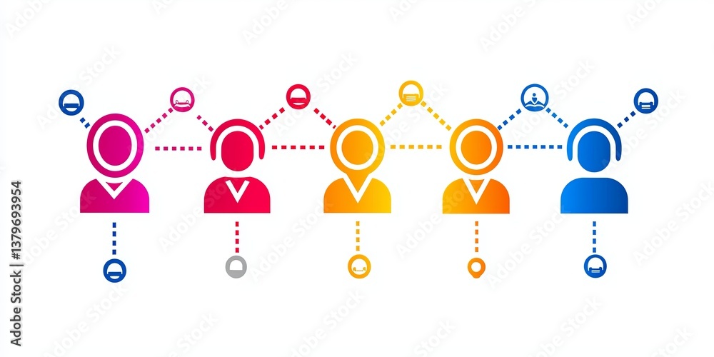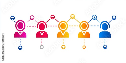 Sticker a set of five thin line icons representing key aspects of business organization, including a human r