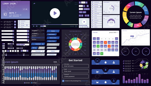 The watermark will not be included on Sticker.: A set of modern interface elements for business applications and websites: buttons, charts, menus, g