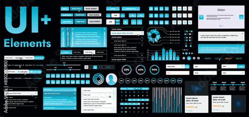 A set of modern turquoise web interface elements designed for the development and design of websitesSticker