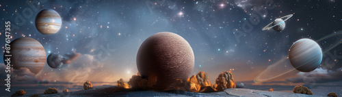 The watermark will not be included on Sticker.: A space scene with a large planet in the middle