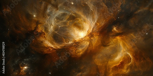 The watermark will not be included on Sticker.: A space scene with a large yellow object in the center