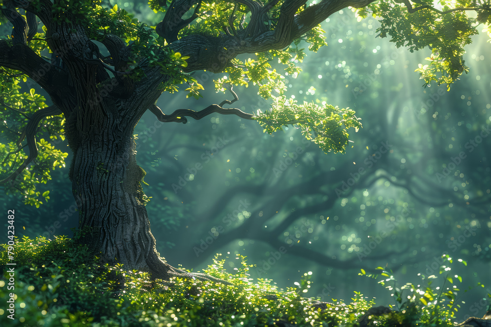 Sticker a tree with leaves that emit a soothing melody when rustled by the wind, creating an enchanting ambi