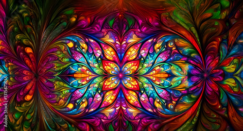 Sticker a vibrant and symmetrical abstract pattern with floral elements. intricate design with kaleidoscope  - Stickers Sticker a vibrant and symmetrical abstract pattern with floral elements. intricate design with kaleidoscope - Stickers