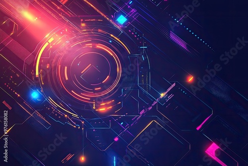 Sticker a vibrant digital abstract background featuring glowing shapes and intricate patterns, perfect for t