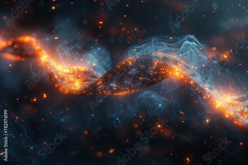 Sticker a visually captivating image showcasing a wave constructed of orange and blue particles, symbolizing