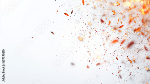 The watermark will not be included on Sticker.: A white background with particles or elements randomly drifting in space -
