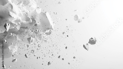 The watermark will not be included on Sticker.: A white background with particles or elements randomly drifting in space -