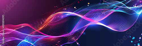 Sticker abstract, elegant blue and purple waves on dark background with empty space for text. modern technol