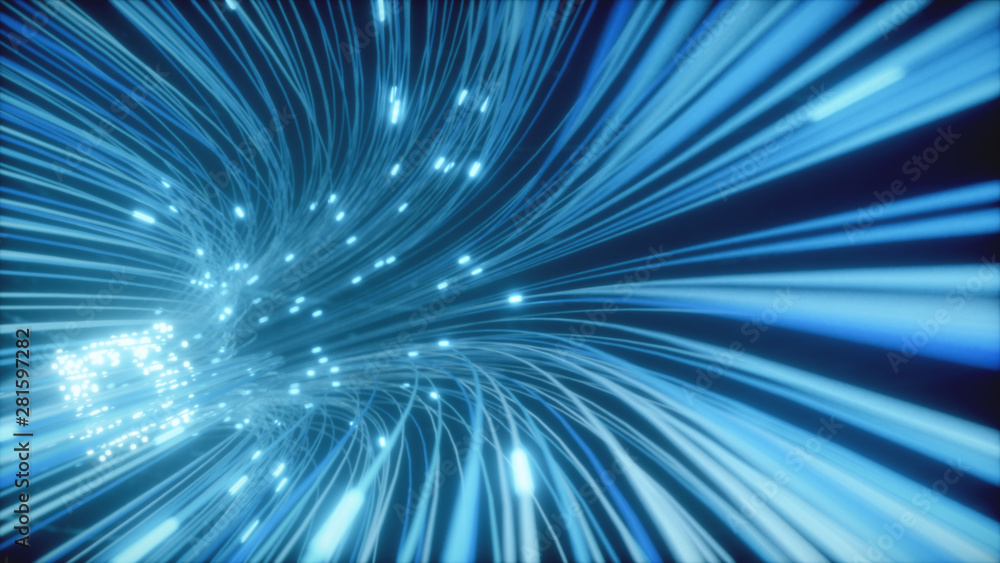 The watermark will not be included on Sticker.: Abstract 3d illustration background of moving of lines for fiber optic network creating technology t
