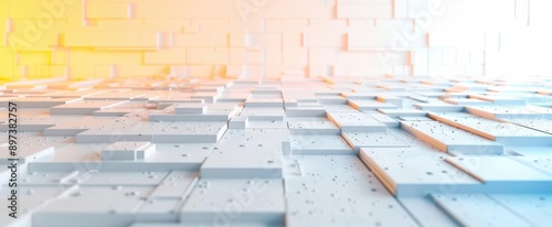 Sticker abstract 3d illustration of white surface with extruding cubes forming a geometric pattern